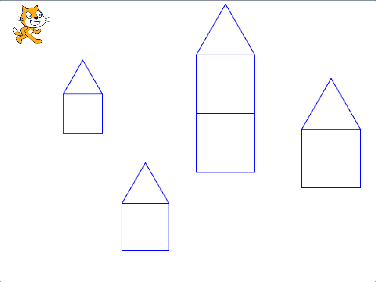 Los dibujos de las casas y de los edificios pueden basarse en el siguiente pseudocódigo: