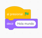 Con el bloque decir de la sección Apariencia, despliegue la frase “Hola Mundo”.